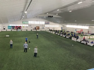 It is an indoor dog sport hall, size of 2400 m2 with artificial grass and temperature around 17 degrees. Venue has toilet facilities and room for viewers.